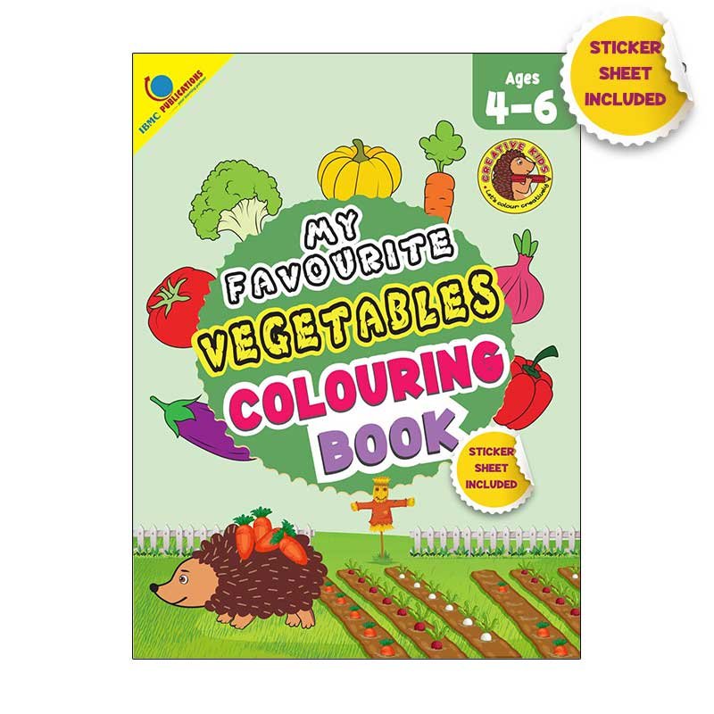 A vegetable colouring book is also included among the series of children’s colouring books to encourage the children to recognize the types of vegetables and colour them by recognizing their shape and colour. A sticker sheet with pictures of vegetables is also included. Before colouring, guide the child to remove the sticker of the respective vegetable and paste it on the relevant page.